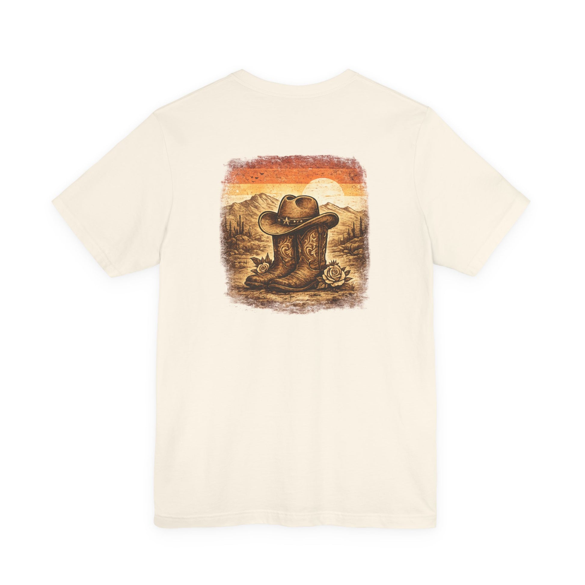 Cowboy Boots and Hat Western Back Print T-Shirt | Vintage Sunset Cowboy Graphic Tee | Unisex Western Shirt
