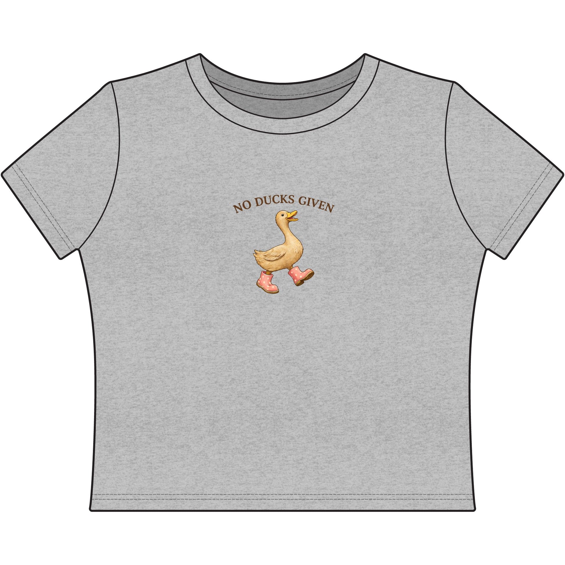 This cropped tee features a charming duck graphic with a playful “No Ducks Given” message. Cute, lighthearted, and easy to wear — perfect for everyday outfits with personality.